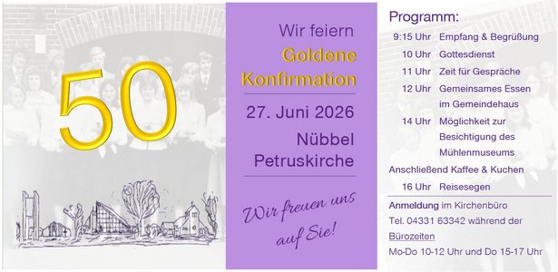 Wir feiern auch in diesem Jahr Goldene Konfirmation! Halten Sie sich Samstag, den 27.06.2026 gern schon einmal frei!